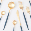 ゴアシリーズの中でもひと際に個性を放つブルー×ゴールドのコンビネーション。日常の食事からパーティーやおもてなし、北欧食器から和食器まで、どんな1シーンにも自分らしいこだわりを演出できるシリーズです。カトラリーが変わるだけでこんなにテーブルの印象が変わるのか・・・とカトラリーの存在の大きさを改めて気付かせてくれます。