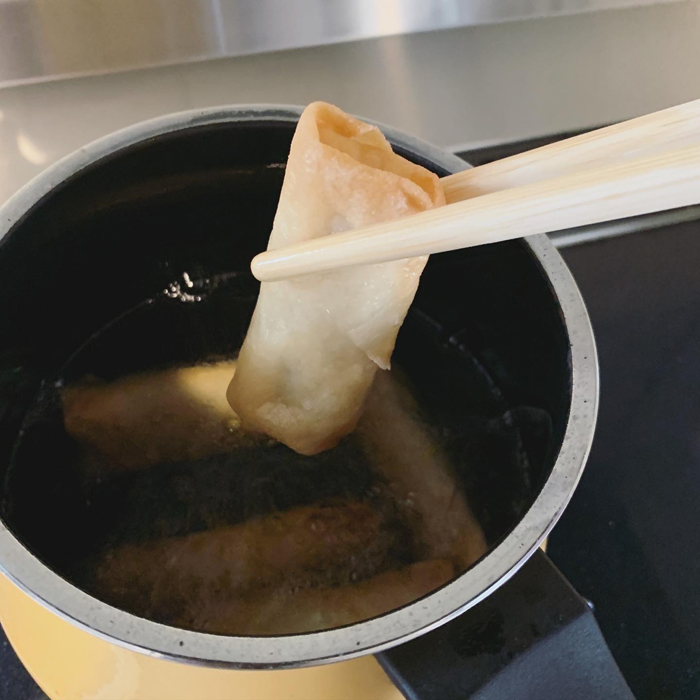 ヤマチクのパスタ箸は「食材を傷つけない」事が得意なお箸です。パスタ専用に作られたお箸でパスタを茹でたり、ソースと和えたりと快適に使っています。と言うことは…揚げ物にも優しく使えるのではないかと思いつき、使ってみたところGood! 春巻きやコロッケにお箸でプスッと穴を開けてしまいませんか?私だけかしら。太いところも安定感があって揚げ物を掴みやすいです。我が家では麺類・和物・揚げ物に使うお箸として活躍中なのです。