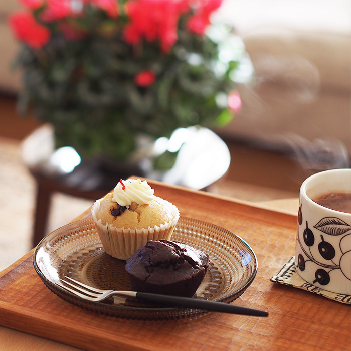 20年後の自分のために、そして家族のために、今年に入ってから食生活を少し見直しています。かと言ってストイックな自己管理はできません。甘いものもやめられない。以前から気になっていたヴィーガンスイーツ店でバレンタインに自分へのご褒美チョコを買いました。異素材の組み合わせが好きなので、木製トレイに陶器のカップ、プレートはガラスをチョイス。ガラスプレートの凹凸に午後の優しい光が差し、濃淡がより際立って美しい。お気に入りに囲まれてのおやつタイムが穏やかに過ぎていきます。