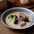 22cmはひとり分のランチプレートとして使ったり、銘々皿としておすすめのサイズです。またメインのおかずを盛り付けるにもちょうど良く、料理を包み込むように広がるたっぷりとしたリムが付いているため、サーモンのクリーム煮のような料理もしっかり受け止めてくれます。