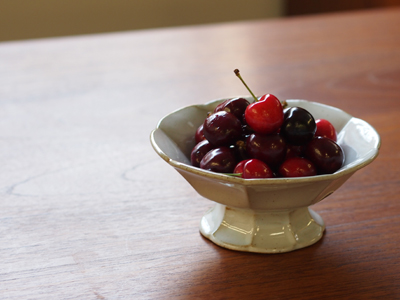 お昼に食べようと思ってお弁当と一緒に買ったアメリカンチェリー。パックのままもアレなのでふと思いついた”エクロール”に盛り付けたら、想像どおりのかわいさでした。脚付きのうつわって特別な感じがして敬遠しがちだったのですが、このシリーズはカジュアルで普段使いに向いてそうです。