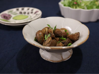 ちょっとした煮物を入れても様になる器。食卓の中でひょいっと頭が出るくらいの高さが華やかさとメリハリがでます。主張しすぎないデザインが副菜を盛り付けた時にちょうどよく、器だけ見ると洋風ですが和食に使うのがおすすめです。