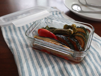 週末作り置き派の我が家では、保存容器をたくさん持っています。今までは野田琺瑯が圧倒的に多かったのですが、このグラスロックを購入してからは常にこちらに保存しています。 まず汁漏れがない!夏にかかせない野菜の煮びたしのようにおつゆたっぷりの常備菜や煮卵、スープなど絶対に汁漏れしません!!さらに匂いも漏れないし、油汚れもつるんと取れるし、なんといってもこの分厚いガラスの重みが頼もしい!これだけ密閉性が高くぶつけても欠けたり壊れたりしない保存容器は他にありません!!