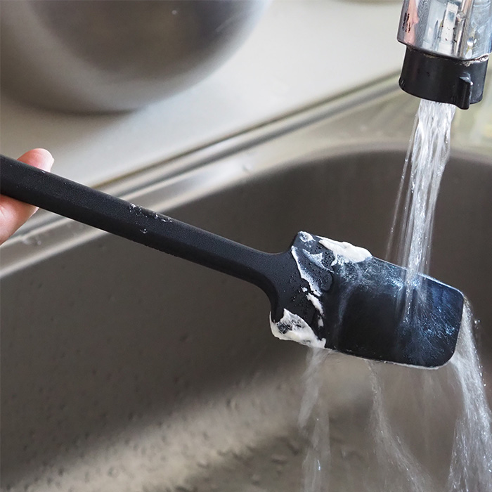 繋ぎ目や凹凸のない一体成型は汚れがたまりにくく、フラットな作りはパンにマヨネーズを塗ったり、ケーキにクリームを塗ったりなどにもお使いいただけます。表面に若干のざらつきを施すことで、食品などがつきにくく洗浄するときも汚れがするんと落ちお手入れも簡単です。フラットな一体成型、シリコンの柔軟性、シンプルなデザイン…各サイズ揃えたくなるおすすめのキッチンツールです。