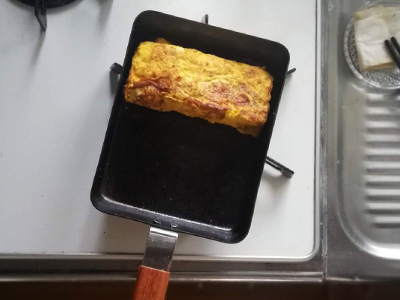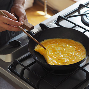 我が家のちょこっと炒め用になっていますが、たまに玉子焼も作ります。今回は卵4コ。本当に焦げないし、途中でちょっと崩れても最後にくるっと巻ければそれっぽい形になるので、今のところ失敗なし!扱いも簡単な鉄パンなので、初心者の方にお勧めです。