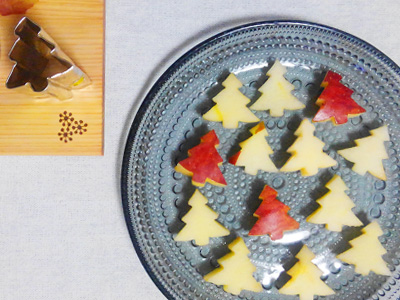 いつものリンゴをもみの木の抜き型で。息子は両手で持ってひと踊り(笑)喜んでくれました!厚く切った硬いリンゴもサクっと抜けるのは職人さんの技術ですね~。ちょっと高いけど使えば納得ですよ。