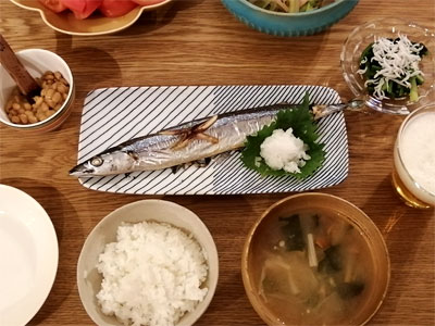 お魚だけでなく、何を載せても映えるデザイン。手持ちの北欧食器にも合うので、とっても重宝しています。今日のサンマは少し小さめ。大きいサンマだと頭としっぽが出ちゃうけど、私はそのままどーんと載せてます(笑)