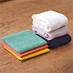 使えば使うほど風合いに柔らかさとボリュームが増し、ふわふわの肌触りに変わっていくのが花ふきんの特徴。もともと、速乾性に優れたふきんですが、お洗濯をした後は広げて干すとより乾きが早く衛生的。吸水性、速乾性、そして丈夫な花ふきんは使い始めは食器拭き、少し使い込んだら台拭きに、そして最後は雑巾としてくたくたになるまで活躍してくれます。