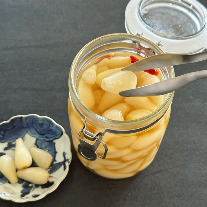 6月にはじめてのらっきょうの甘酢漬けを仕込みました。八百屋さんでは土付きのらっきょうが1kg以上入って400円ほど。お買い得!持ち帰るとせっせと皮を剥きましたよ。検索レシピだと10日くらいで食べれるとありましたが、納得のいく味になっておらず頭の中が「???」失敗したんじゃないかと思ったのですが…漬かりが甘いのだろうと途中味見をしながらひと月が過ぎたところで「あ、らっきょうの味になった」と納得の味に。1Lサイズは冷蔵庫に入れられるので気軽に扱えて便利です。
