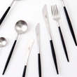 北欧などの洋食器だけではなく繊細な和食器とも相性が良い、合わせる食器を選ばないGOA。ブラック樹脂の柄とマットシルバーの組み合わせは、ミニマムでハイセンスな印象を与えてくれます。オリジナリティーに溢れるラインと手作業ならではの独特なカッティングが施されたGOAは、そのデザイン性だけでなく使い心地にもこだわって作られています。また、ボックス入りのセットはギフトにもどうぞ。