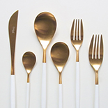ホワイト×マットゴールドのコンビネーションは上品な華やかさがあり、テーブルコーディネートのワンポイントとして取り入れると、とっておきの食事の時間を演出してくれます。ティースプーンはお気に入りのカップ&ソーサーに添えたり、アイスクリームやゼリー、プリンのスプーンとして使ってもちょうど良いサイズです。また、お子さま用のカトラリーとしても可愛いですよ。