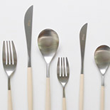 ユニークなシルエットにナチュラルテイストのアイボリー×シルバーの配色・・・日常の食事風景に寄り添いつつも、遊び心のあるスタイリングが楽しめます。手に馴染みやすくストレスなく使える口当たりの良さをもつミオのカトラリーは、食卓の新しい定番となりそうです。