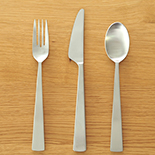テーブルを洗練された雰囲気に演出するヘアライン(艶消し)仕上げは指紋や汚れなどが目立たず、継ぎ目もないので汚れが溜りにくく衛生的。買い足ししやすい価格も日常使いにぴったりなカトラリーです。