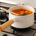 ガラス質で覆われているホーローは「汚れやニオイがつきにくい」、「熱の伝わりが柔らかで保温性が高い」、「酸やアルカリに強い」、「汚れが落ちやすく衛生的」など、どなたが使っても言うことなしの嬉しい機能性が備わっています。真っ白なホーローを目にすると色移りが心配になるカレーやトマトスープ、いちごジャムや桃のコンポート作りも安心してどうぞ。ニオイもつきにくいから、本来の風味を食卓で楽しむことができます。