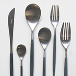 北欧食器はもちろん和食器との相性も良いブラック×シルバーに、ミオの柔らかな曲線がプラスされたミオ・ブラック。クチポールらしいスタイルをキープしつつ、ミオの丸みのあるフォルムが親しみやすい印象のカトラリーに仕上げています。普段使いはもちろん、おもてなしの席に使えばゲストに一目置かれる存在になりそうです。
