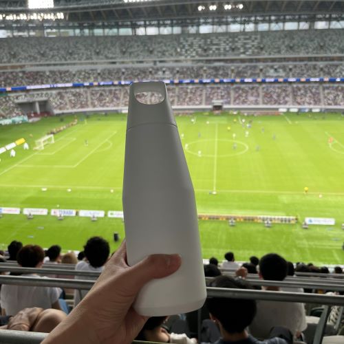 家から缶ビールをタンブラーに詰め替えて、いざ、観戦に!!会場の入り口では、ビールを持参した人は紙コップに移し替えて入場するけど、持ち歩くのも大変だし、ぬるくなっちゃいますよね。だけどこれならこぼさずに冷たいまま飲めるんです!もちろん、炭酸水もOK。冷たいシュワシュワで暑い時もすっきり!製氷機の氷も入るから熱中症予防に、猛暑に大活躍です。家族も気に入ってサンドベージュも買いました♪
