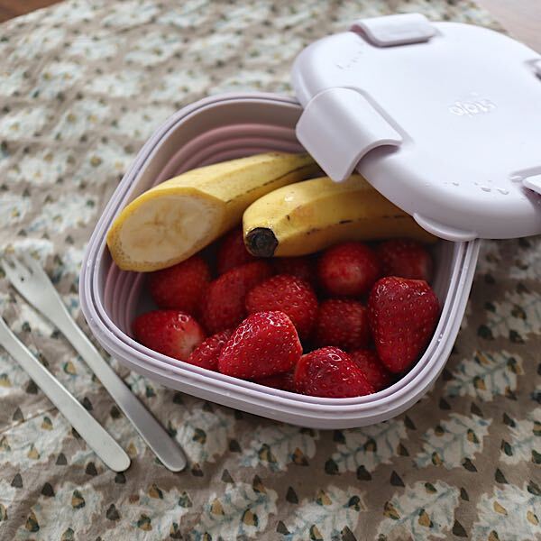 ピクニックに行くときにフルーツをたくさん持っていきたい!そんなときに便利なのがこのランチボックス。深さもあるし結構入るのでフルーツをまるご入れることも可能です。食べ終わった後の果物の皮や手を拭いたティッシュなど入れてもぺたんこにできるのでゴミ袋を持っていかなくても大丈夫。持ち運びに便利なランチボックスです♪