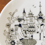 2023年秋、アラビア150周年を記念してエミリアシリーズが待望の復刻。フィンランドを代表する装飾家でアラビアに40年間デザイナーとして在籍したライヤ・ウオシッキネン(Raija Uosikkinen)が1957年に手掛けた作品で、今なおヴィンテージ市場で希少性の高いテーブルウェアとして人気を誇る名作です。このシリーズはライヤ・ウオシッキネンの叔母、セルマからインスピレーションを得たもの。アメリカに移住したセルマの暮らしぶりからイメージしたおとぎ話のように美しい瞬間を白の背景に黒の装飾で切り取り、彼女が得意とする繊細なタッチで描いています。