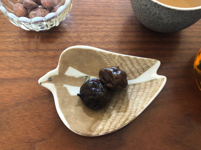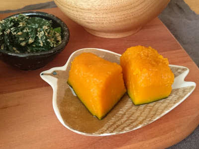 この目の笑っていないアホウドリ、しばしば食卓に登場して私を癒してくれています。サイズや色合いが和・洋どちらにも合うので取り入れやすいですよ。今回はかぼちゃの煮物を乗せてみました。