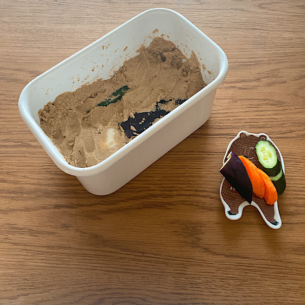 友人宅でいただいたぬか漬けがおいしくて1年ほど前にはじめたぬか漬け。無印良品のすぐ漬けられるぬか床を購入してしばらくはチャック袋のまま漬けていたのですが、キュウリを切らないで漬けたいなと思いぬか漬け美人を導入しました。たくさん漬けられるし、水取器で余分な水分もとれるので快適です。