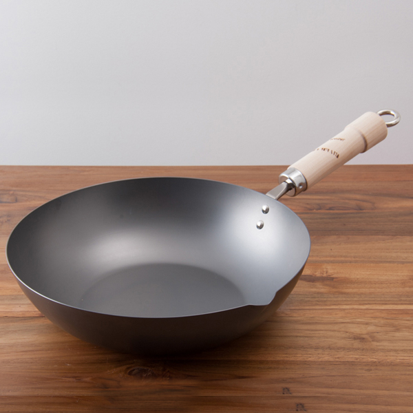 | 材質 | 本体:冷間圧延磨き鋼版 (板厚=1.6mm) 鍋の表面仕上げ:特殊熱処理(窒化鉄) ハンドル:天然木 |