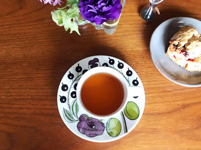 紅茶にはパープルバラティッシ、コーヒーにはブラックパラティッシを使うことが多いです。ティーカップは口径が広いので香りを感じやすく、パープルバラティッシの瑞々しい絵柄は紅茶の香りも色も引き立ててくれるような気がします。