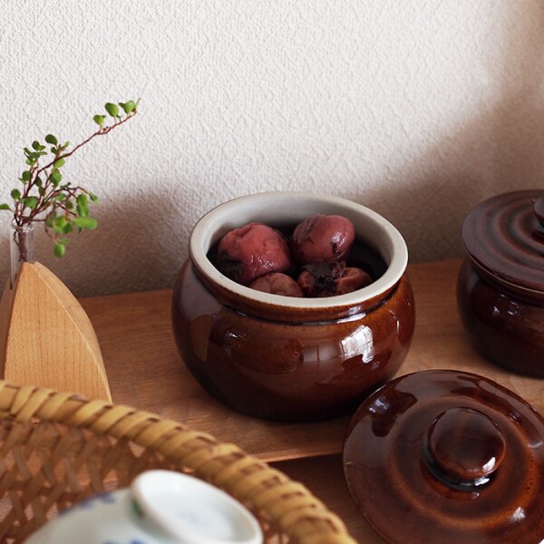 「梅干し入れにいいわよ」と友人から頂いた、東欧土産の小さな陶器の甕。梅干しが程よく水分調節されてさらに美味しくなり、甕の素晴らしさを実感。とても気に入っていたんですが夫に割られてしまい。。。なかなか気に入った甕が見つからず、10年越しでやっと出会えました。悩んだ結果飴色の茶色に決定!1合と並べて使っています。