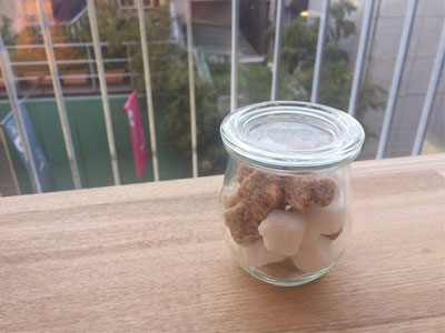 先日、自由が丘のカフェでコーヒーを頼んだら、お砂糖がWECKの瓶で出てきました。お砂糖がそのままでてくるよりも、こうして入れてあると中身も見えておしゃれですね!