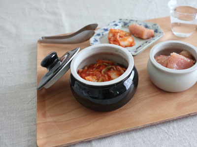 キムチって、買ってきたパックのまま入れておくと冷蔵庫を開けたときに「キムチくさっ!」と冷蔵庫がキムチ臭になることが度々・・ それがこの甕に入れておいたら全く臭いが漏れないんです!!黒色の甕に赤いキムチが映えておいしそうに見えるのでこのまま食卓に出してもいいですよ。