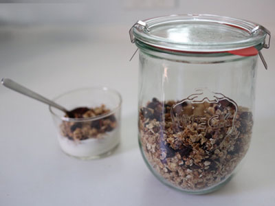 最近、息子がお店で売ってるグラノーラを食べたがるので息子のために、オーツ麦とドライフルーツのグラノーラを手作りしました。息子はクルミアレルギーなので、市販のグラノーラはナッツが入ってるものがほとんどだから食べさせられませんが、手作りなら安心! たっぷり作ったのでこのサイズに入れて保存しましたが、息子が気に入ってくれてすぐになくなってしまいそうです。