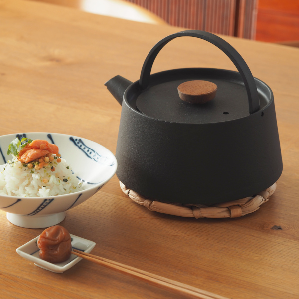 今日はなんだか食欲がないな、という日や食べ過ぎてしまった翌日の調整日などお茶漬けで簡単に済ませてしまいたいときも、鉄瓶でお湯を沸かせば楽ちんな食事を摂りつつ鉄分補給もできて一石二鳥です。tetuの底面の直径は16.5cmなのでサンク井草のマットSがぴったりです。口が広いので蓋を外して乾燥させるときも、湯気を逃がしやすいので早く乾いてくれます。毎日眺めたくなるかわいい鉄瓶で鉄活はじめませんか?