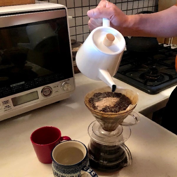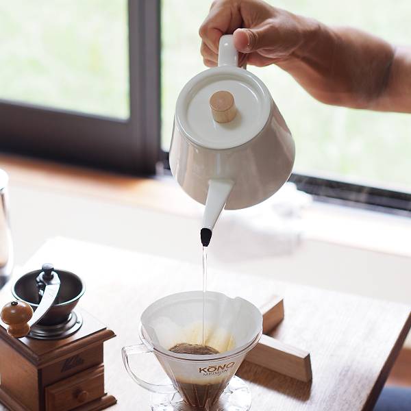 これまで使っていたポットでコーヒーにお湯を注ぐときに比べると、水量が一定して出るのでとても入れやすくて、いままでは緊張して入れていたのだなーと思いました。水切れもとても良くって気持ち良い。ほんとうに楽々注げて、コーヒーを入れる技術が上がったような気がして楽しいですよ。