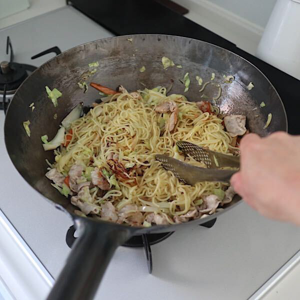 以前「スタッフの中華鍋の選び方3」のブログで紹介したこの中華鍋、大きいサイズにもかかわらず軽くて扱いやすいので毎週のように使っています。なかでも使っていて本当に買ってよかったと実感するのは週末によく作る焼きそば。野菜と麺を一緒に炒めると、つい具が飛び散るのですが、それがない!もちろん油はねもほとんどありません。何と言っても野菜がシャキシャキ、麺もべちゃっとしません。炒め物はフライパン、と思っていましたが、中華鍋を買うとその使い心地、料理の出来に感動します!