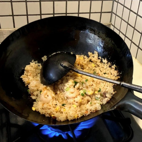 パラパラの炒飯を作るなら絶対山田の中華鍋!と会社のみんなからおすすめされて数年・・。買おう買おうと思っていても、どのサイズを買おうかずっと悩んでいました。 まず大きさは30㎝以上、これなら深さもあって、ちょっとやそっとじゃ炒めた具材もこぼれません!片手だと重たくて持ち上げられないかもしれないと厚みは1.2㎜。大きい鍋に慣れていないので安定感のある平底タイプに。大きい鍋だと空焚きするのは大変なので、空焚き済みのタイプにしました。 大きくて収納ができるかどうかが一番不安でしたが、他の鍋と重ねて収納しても、軽いので出し入れはそんなに苦になりません。むしろ使い道がたくさんあって、炒飯以外にも揚げ物などいろいろ試してみたいです!