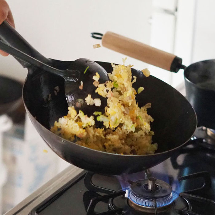 炒め物には中華鍋がやっぱり便利。フライパンより深さもあるので一度にたくさん調理できるのも嬉しいところ。チャーハンもパラっとおいしくできますよ。炒め物以外でも揚げたり茹でたり、我が家では普通のお鍋よりも中華鍋を使うことの方が多いくらい。我が家の食卓を支えてくれています!