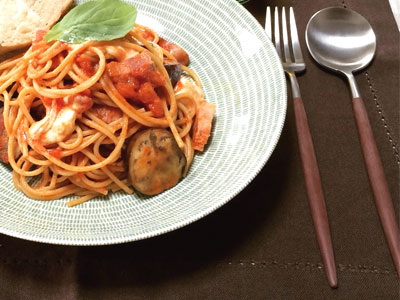 第一印象はおしゃれで繊細なイメージのあったクチポールですが、黒とシルバーはどんな食器にも馴染むので、今ではシーン問わず活躍できる万能選手!となくてはならない存在に。ディナーサイズは少し大きめなので、普段使いではデザートの方が出番多めです。
