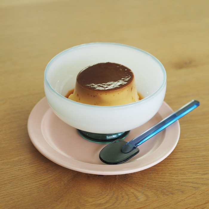 ほら可愛い。優しいトーンのカラフルさと、ガラスと陶器の異素材な組み合わせが良い雰囲気です◎ プリンの上に生クリーム乗せたらもっと良かったかしら?是非とも SNOW BOWLとSAKUZAN Sara プレート14cmと組み合わせて使って欲しいです。ちなみにSNOWシリーズは耐熱ガラス製です。シャベルの形をしたスプーン「SNOW SHOVEL」はホットの飲み物にも合わせられるので意外にも冬でも夏でも季節を選ばない使い勝手 & オリジナルの箱が可愛いのでプレゼントにもピッタリ!透き通るニュアンスカラーが綺麗です。