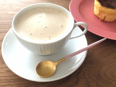 白いカップ&ソーサーにクチポールのティースプーンを合わせてみただけで、ほんのりと上品さに可愛さがプラスされました。カラフルなクチポールは小さなアイテムから取り入れています。ラテのふんわりした泡もすくって味わいたい食いしん坊な私に、このスプーンがぴったりです。