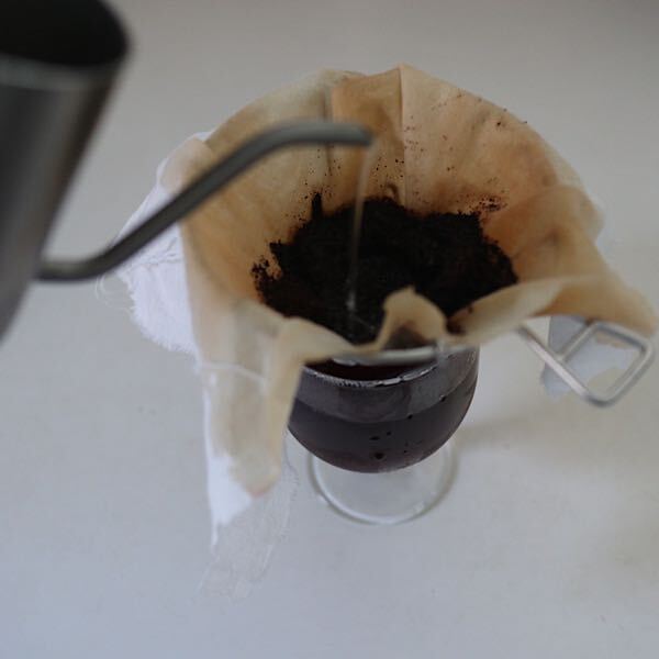 さらしのいいところは消耗品とはいえ意外としっかりしているので、洗濯して何度も繰り返し使えます。とはいってもさすがにほつれも出てきてクタクタに・・こうなったらもうそろそろ使い終わりのサイン。Cutタイプは最初から35㎝の正方形に切り取って使えますが、最後なので半分に切って、こんなふうにコーヒードリッパーに使いました。まるでネルドリップのように淹れたアイスコーヒーはまろやかでしっかりした味わいに。珈琲色に染まったさらしもまた素敵!もう少し使ってみようかな・・と思っていたら、なかなか捨てられません笑