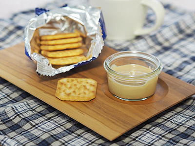 くぼみにカップを置いておうちカフェの時間が楽しめる♪木のカフェトレイですが、今回はWECKに入れたピーナツバターを置いておやつ時間に。くぼみがあるのでディップしてもWECKの容器が動かない!見た目もかわいい組み合わせにニッコリです。おつまみ+ディップソースやパン+ジャム瓶・・・など、バリエーション豊かにいつでも使えるトレイですよ!
