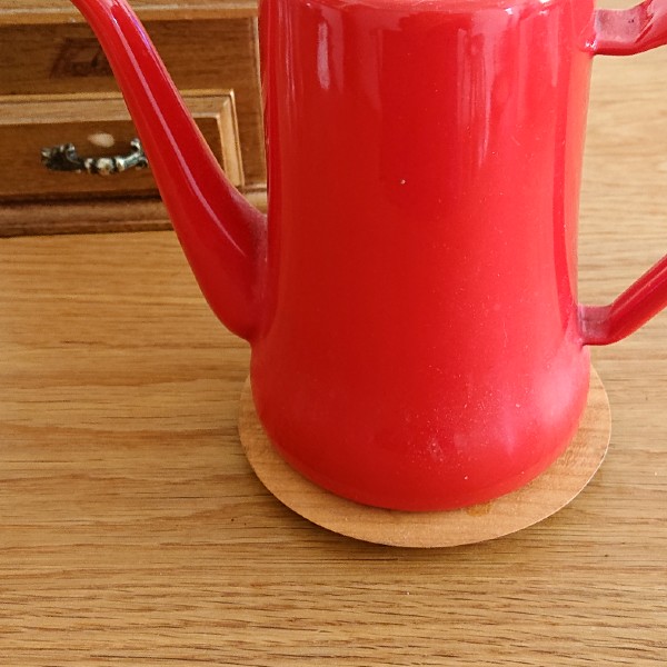 朝のコーヒーは主人が淹れてくれます。でも、ドリップケトルを直接テーブルに置かれるのが嫌でしたー。絶対使ってくれるように見えるところに鍋敷きを置いておきたいけど、我が家にあるものは大きめサイズばかりなので躊躇していました。偶然オフィスでこのプレートを見てひらめき早速試してみたところ、まるであつらえたかのようにテーブルの色味ともぴったり♪これで毎朝のモヤモヤがひとつ解消されました。