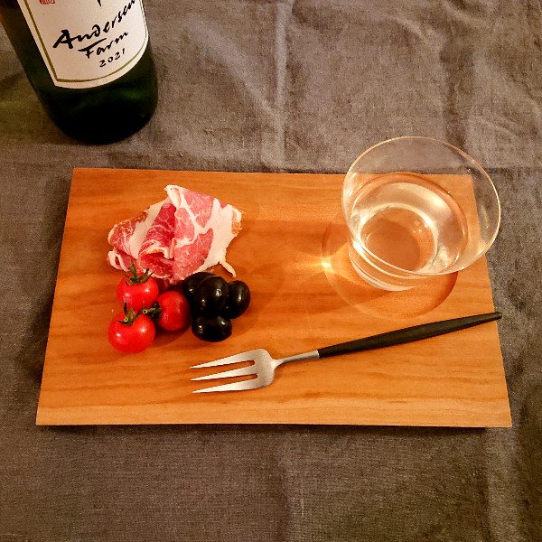 夫が楽しみにしている晩酌タイム。この日の飲み物は広島産ぶどうを使った白ワインだったのでアペリティフとともにカフェトレイに盛り付けてみました。生ハムなど汁気の少ないおつまみだったので直接盛り付けましたが、日本酒なら塩辛やお刺身を豆皿などにのせてから盛り付けても素敵かも!ちなみにグラスはベッロのMサイズをワイン用として使っています。