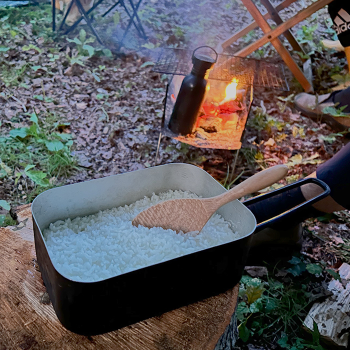 今年の夏のキャンプもいつもと変わらずカレーライスがメインメニュー。白米は夫のキャンプ道具の一つ、メスティン(四角い形状のアルミ製の飯ごう)で炊きます。ごはんをよそうのに試しにこちらのしゃもじミニを使ってみたところ、とても良い仕事をしてくれました。スプーンではごはんが窪みにくっつくし、お箸では何往復もしないといけない。プチストレス!ごはんがこびりつきにくい形状、且つメスティンにも収まってしまうミニサイズのこのしゃもじはキャンパーに是非進めたい道具の一つです。