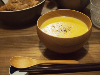 季節じゃなくてもたまに食べたくなるお汁粉。わたしはつぶあん派ですが、家族はこしあん派。そこは作る人の特権で今日はつぶあん!めいぼく碗は普段使いに最適のお椀です。ぶなは木目が比較的穏やかなのでいろんな食卓にマッチしますよ。