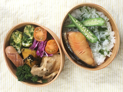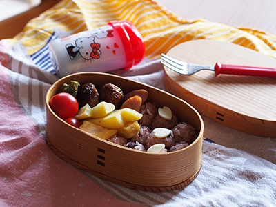曲げわっぱのお弁当箱は、同じおかずでも他のお弁当箱に詰めるより何となくおいしそうに見える気がします。このお弁当箱は気が付いたら10年超えて使っていました。よく見ると経年変化が見られますが、まだまだ現役。入れるおかずも好きなものを入れることが多いのであまり変わり映えのしないお弁当ですが、これからも大事に使っていこうと思っています。