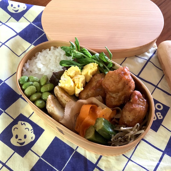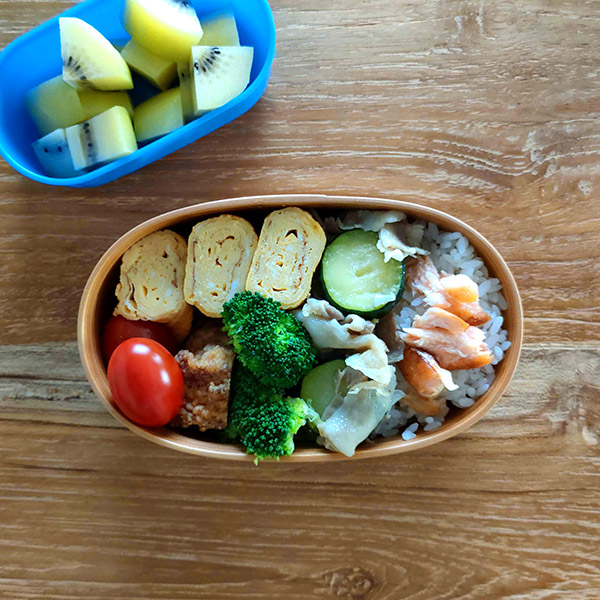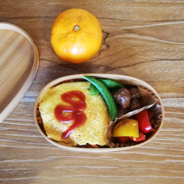 冬休み中の学童弁当です。オムライスはおかずが少なくてもオッケーと個人的に思っているので困ったときのお助けメニュー。夕方には概ねカピカピになっているケチャップですが、ウレタン塗装のお陰で洗うのも苦になりません。入園入学の準備を始めている方、曲げわっぱのお弁当は詰めやすいし軽いしお手入れ簡単。しかも冷えたごはんも美味しい!と4拍子揃ってますよ。是非ご検討ください。
