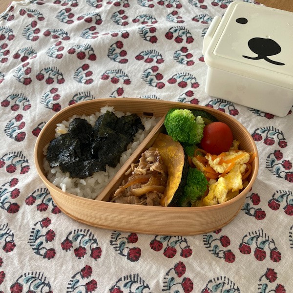 毎度代わり映えしませんが、先月末の運動会弁当です。ごはん少なめ、おかず多めで!とのリクエストでした。とは言え、炭水化物もしっかり取ってもらいたいので炒め物の下にごはんを忍ばせています。通っている小学校は家族でお弁当を食べるシステムではないので、お重に詰めたハレのお弁当には縁がなさそう。憧れはあるけれど私にはハードルが高く、ホっとしています。詰めやすく見た目も程々になる曲げわっぱ弁当は子供もお気に入り。我が家のベストです。