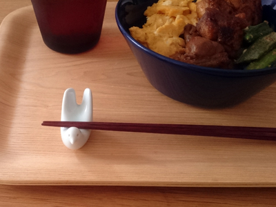 一人ご飯の時はいろいろと横着にしてしまいがちです。「これではいかん!」と思い、箸置きからはじめてみました。小さなことりががんばって(?)支えてくれる姿がかわいい♪つるんとした陶器なので汚れても簡単にお手入れ出来ます。