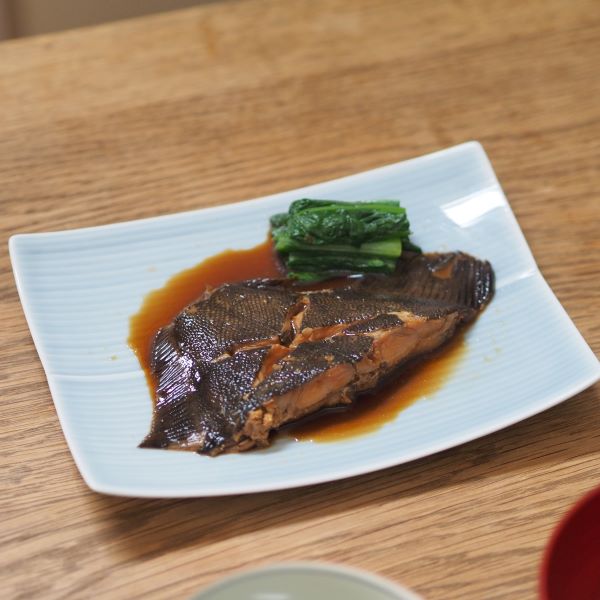 お魚といったら、この器!というくらい、魚専用のように使っているこの器。少しカープがついているので、煮魚でもこんな感じ。焼き魚のときの大根おろしやスダチなどもバランスよく盛り付けられるので、家ではやっぱり、お魚はこの器で決まりですね。カレイの煮付けは、煮汁を沸騰させてカレイを入れたらアルミを被せて10分、アルミをとって3分ほど。フライパンでもできるので気軽にチャレンジしてくださいね!
