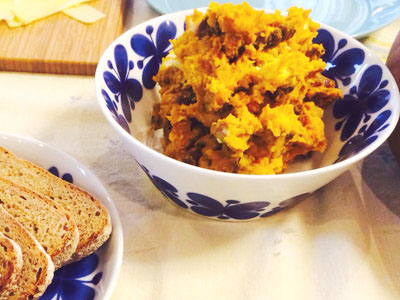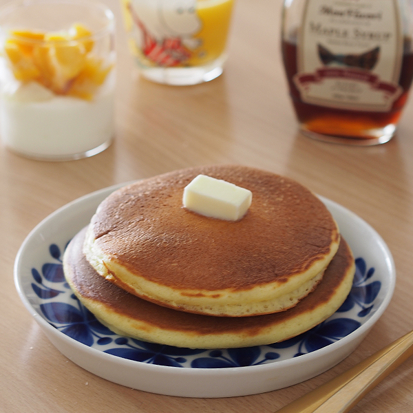 幼い頃の休日の朝ごはんといえば、母が焼くホットケーキ。大雑把な性格の母は目分量で牛乳を入れるため、毎回膨らみ方は違いましたが、バターとメープルシロップたっぷりのホットケーキの思い出は今でも鮮明です。もちろん今も休日の朝ごはんの定番はホットケーキ。「娘も将来、休日の朝はホットケーキかしら」なんて思いつつ手にしたプレートは、眺めているだけで幸せな気持ちになるブルーのお花模様のモナミ。シンプルなホットケーキに華を添え、気分よく一日がスタートする気がします。